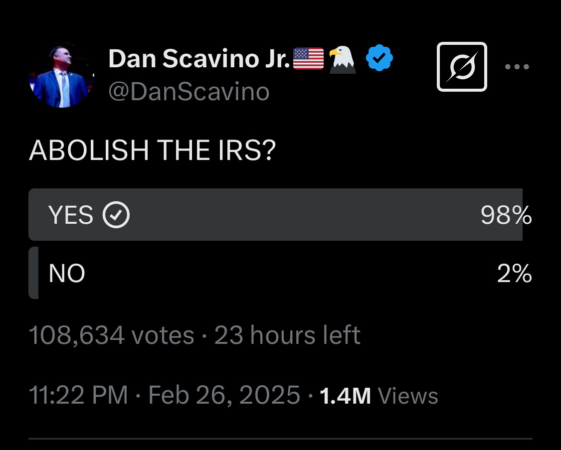I agree those that want the âtaxesâ extortion to continue are typically the ones benefitting off of the âsystemâ. We have been conditioned to think that we need all of this bloated administrative state infrastructure to operate. The fact of the matter there are tons of technology that would / could be tremendously more efficient and cost effective. What did communities do 50-75-100 years ago? If the community acted as it used to where the people and their neighbors acted as a cohesive unit to cooperate and support one another 80% of what exists would cease to exist.
