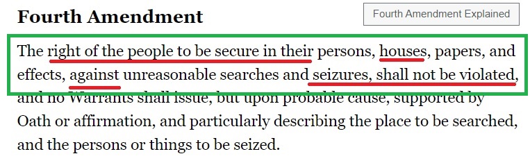 That being the case…let’s use the Constitution’s Fourth Amendment (being the higher authority) to “imply” that State/County laws (being the lower authority) seizing their homes for tax debts, is UNCONSTITUTIONAL. Here we go, …(and remember to keep the logic of your argument for county seizure of homes within the confines of the happy little green box that I painted for you, as it is the supreme law of the land)…