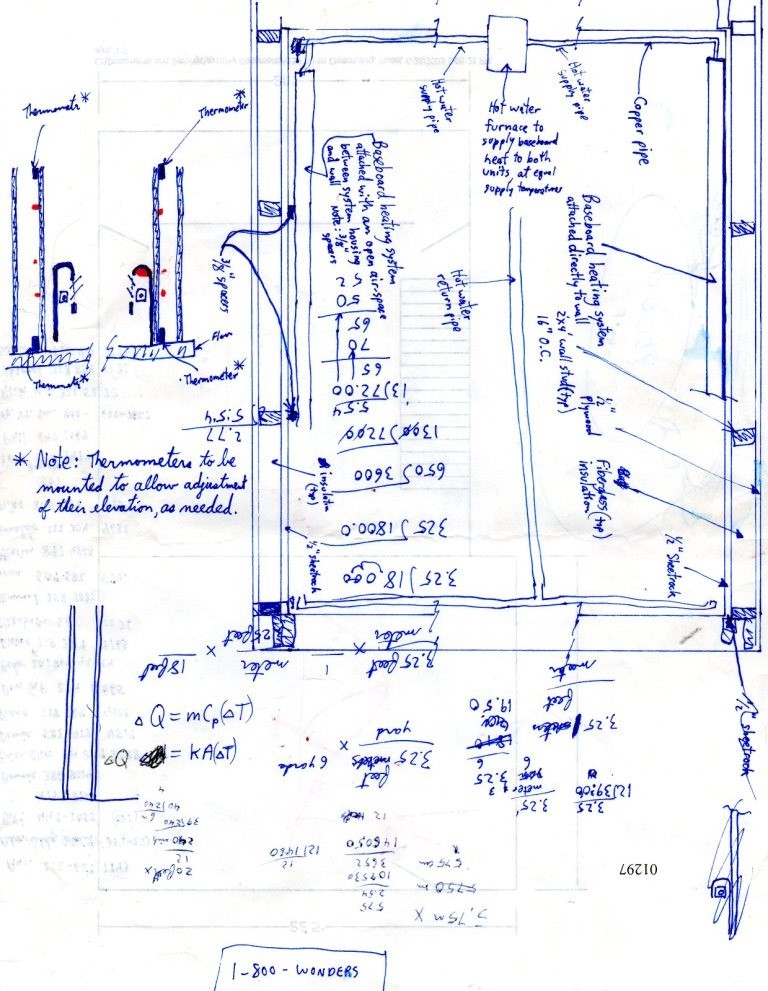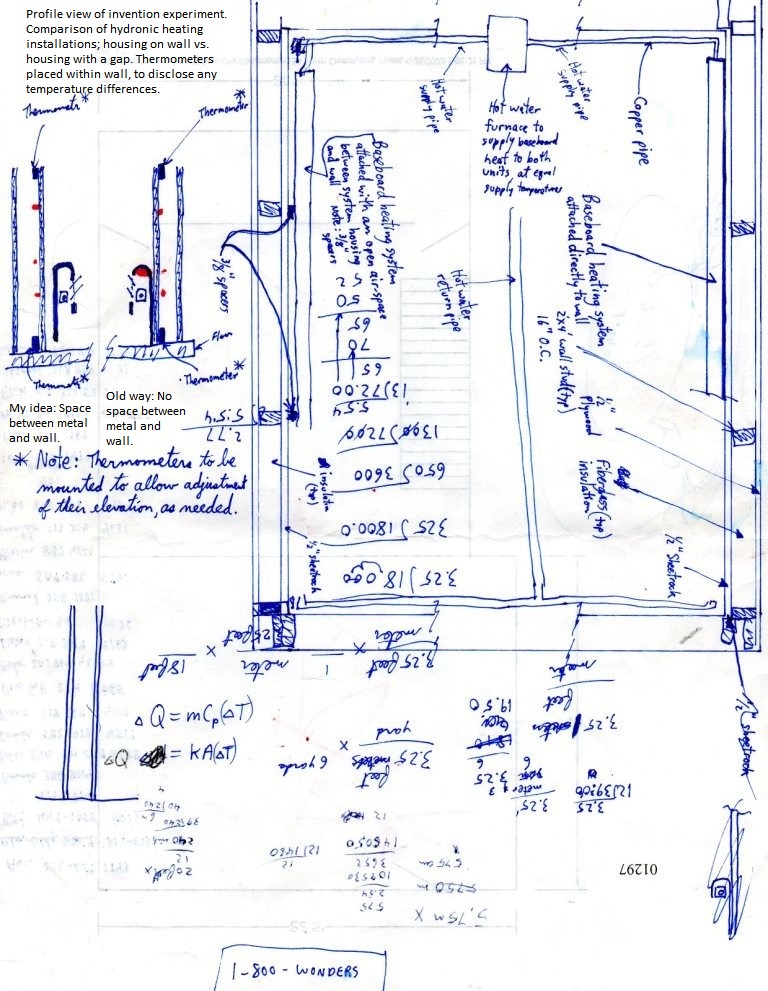 Baseboard heat systems are most always installed on exterior walls, some portion of heat transferred to the wall-side of the hydronic housing goes outside. How much? I want to know. I attempted to calculate (and/or measure) the energy transfer, but: