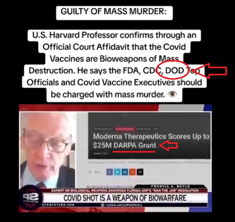 It is important at this stage, that we understand the degree to which the Pentagon and the Department of Defense are involved in the production and subsequent distribution of these deadly mRNA vaccines; and most importantly, the revelation of those behind this military coup, who have since weaponized the American military against the American People, deploying this form of 5th generation biowarfare against them. These toxic mRNA spike protein and prion injections need to be halted immediately and a thorough investigation into DARPA, the Pentagon, and the DOD should begin in order to determine the degree of collusion between these stated military institutions and the current pharmaceutical industry as it relates to mRNA technology and vaccines.