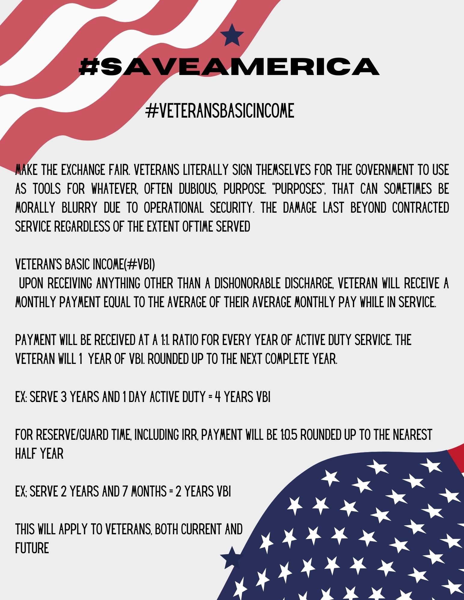 Check out vote for my Veteran’s Basic Income policy on page