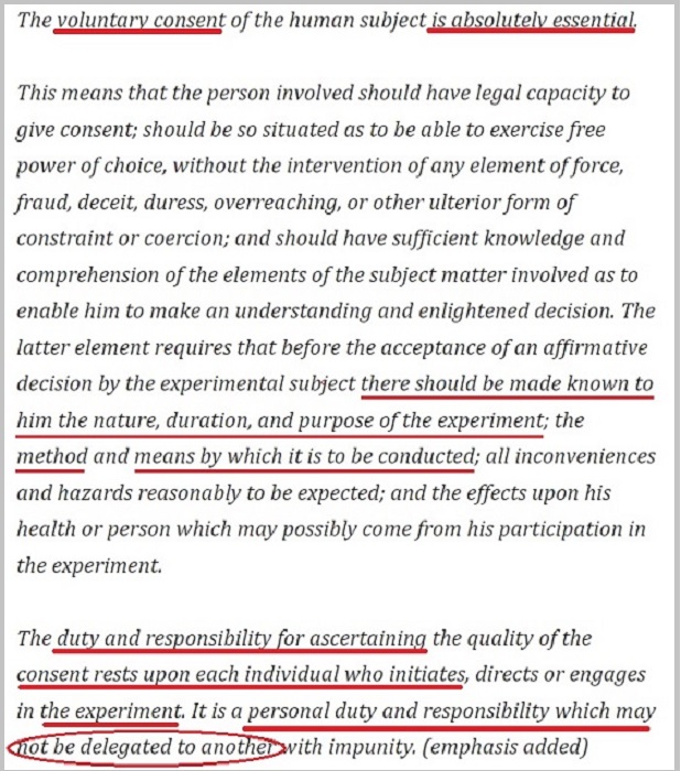 Excerpt of nonconsensual novel drug experimentation and administration within context of the currently active and globally-enforceable Nuremberg Code…