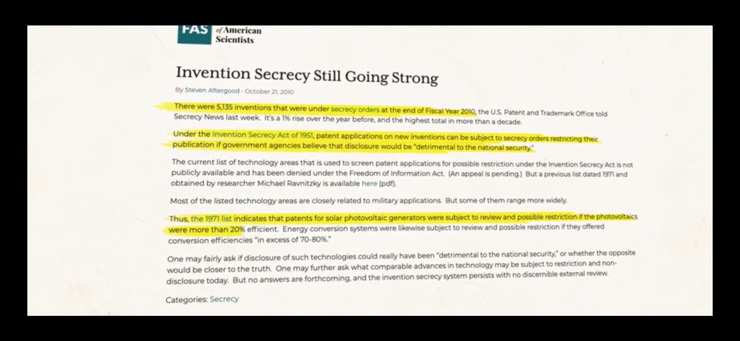 This applies to all areas of life. Health inventions, clean energy inventions, cheap power & electricity inventions, international defense, sovereignty, communications, internet, gas & electric engines efficiency, agriculture, growing food.